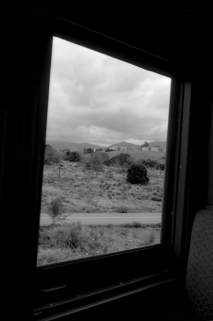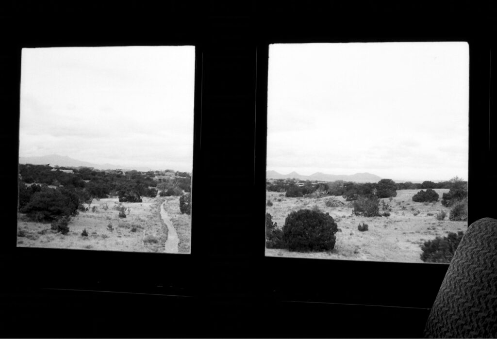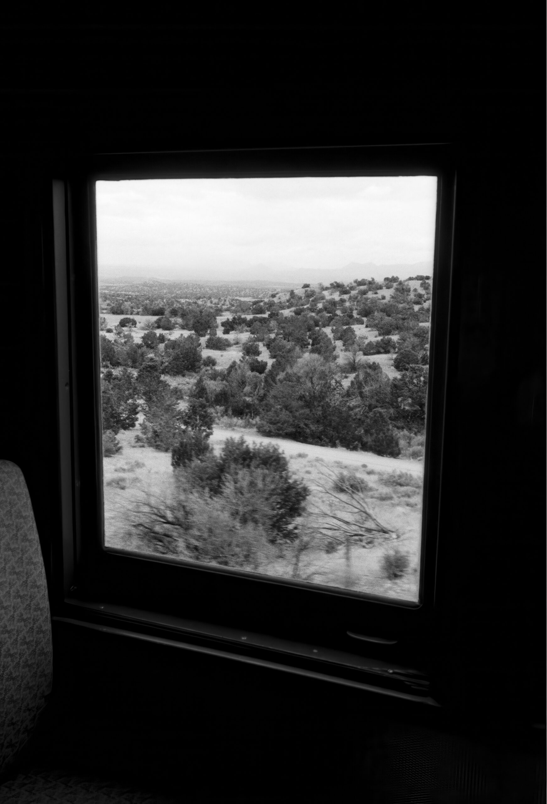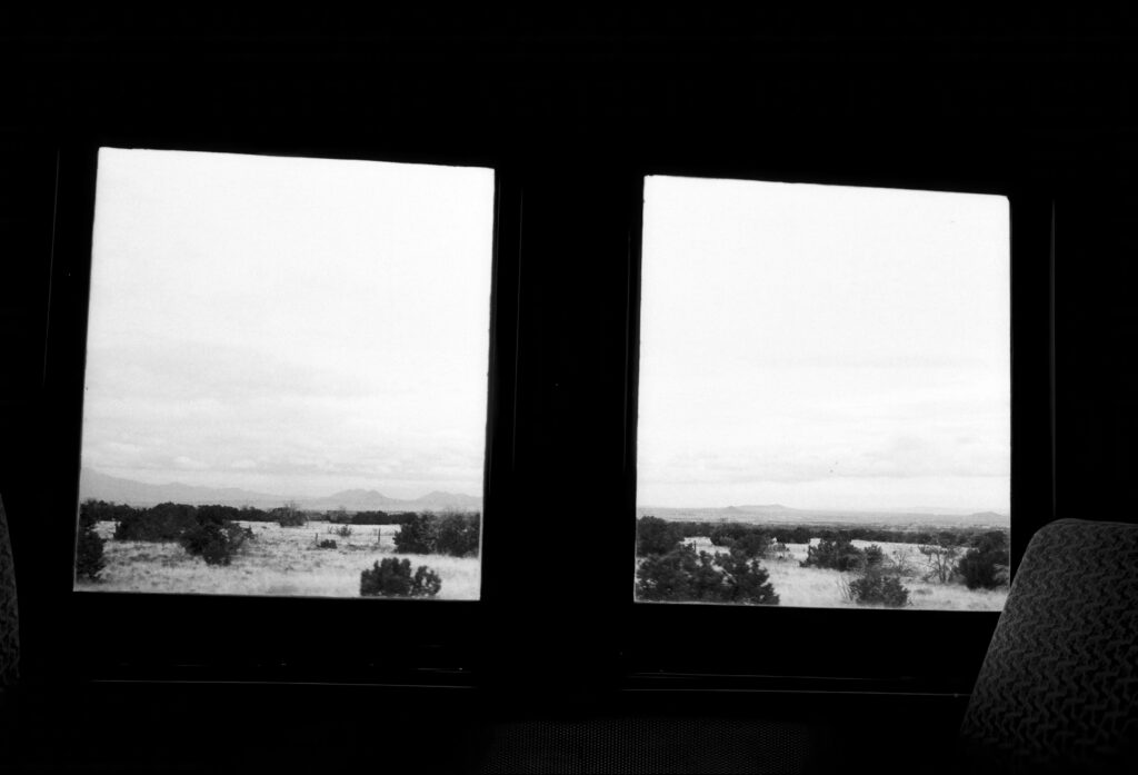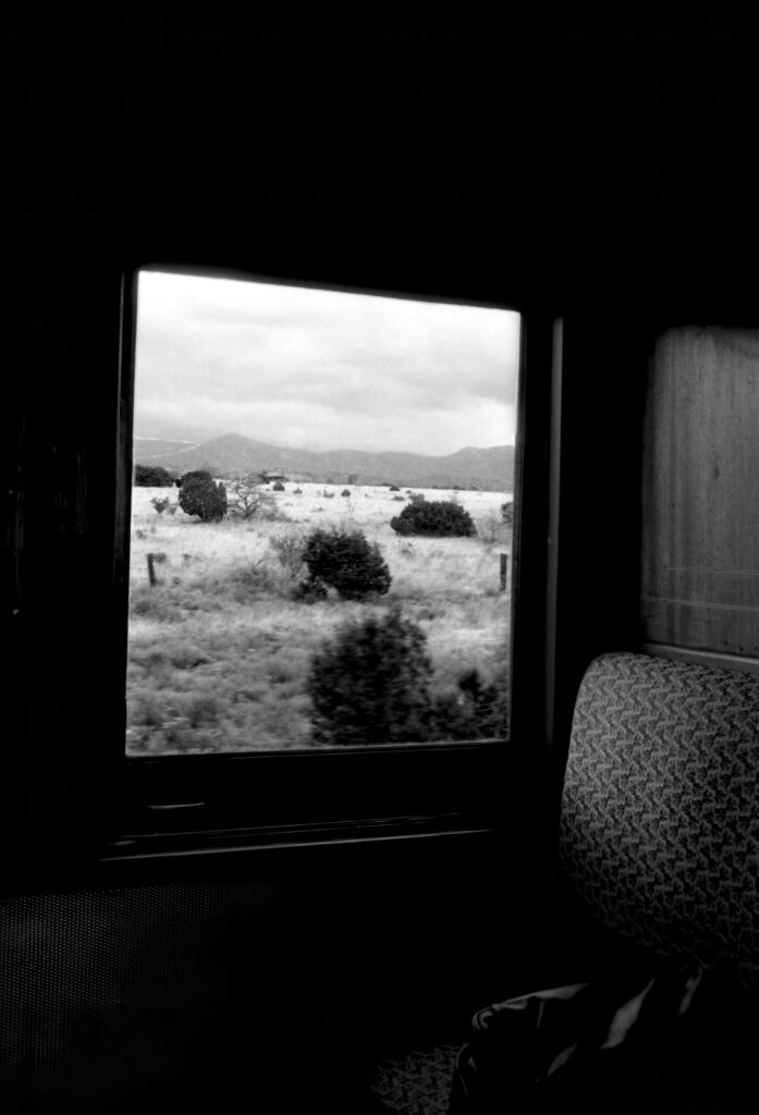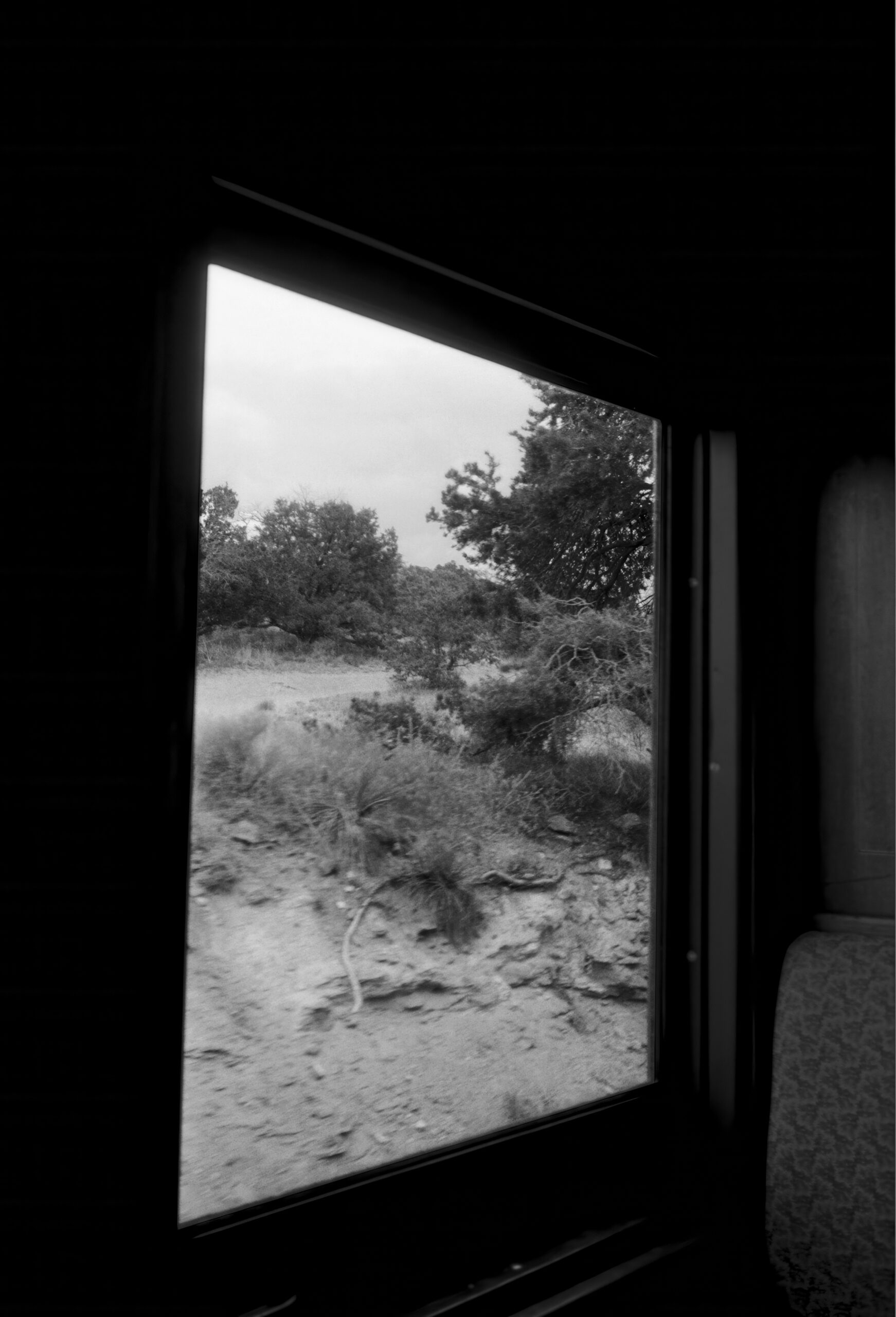 For Frontier States, Gaudiani was drawn back to the southwest as metaphor for the new landscape for her life, wanting to capture the beauty in the desolate, vast, and architectural landscape where she could see the weather at long distances. Gaudiani shared the lonely tension that existed in the history of this frontier land: the disparity between wide open spaces and the marks men had tried to make, between the hope and innocence it once represented and the reality of what it became. This is not an easy land to find a foothold in, but people have done it. The angular architecture of the train windows mirrors this austerity, creating the effect of going far away and sometimes coming together. When grouped in threes, in triptychs, the images remind one of altar pieces and speak to the sacredness of this land.